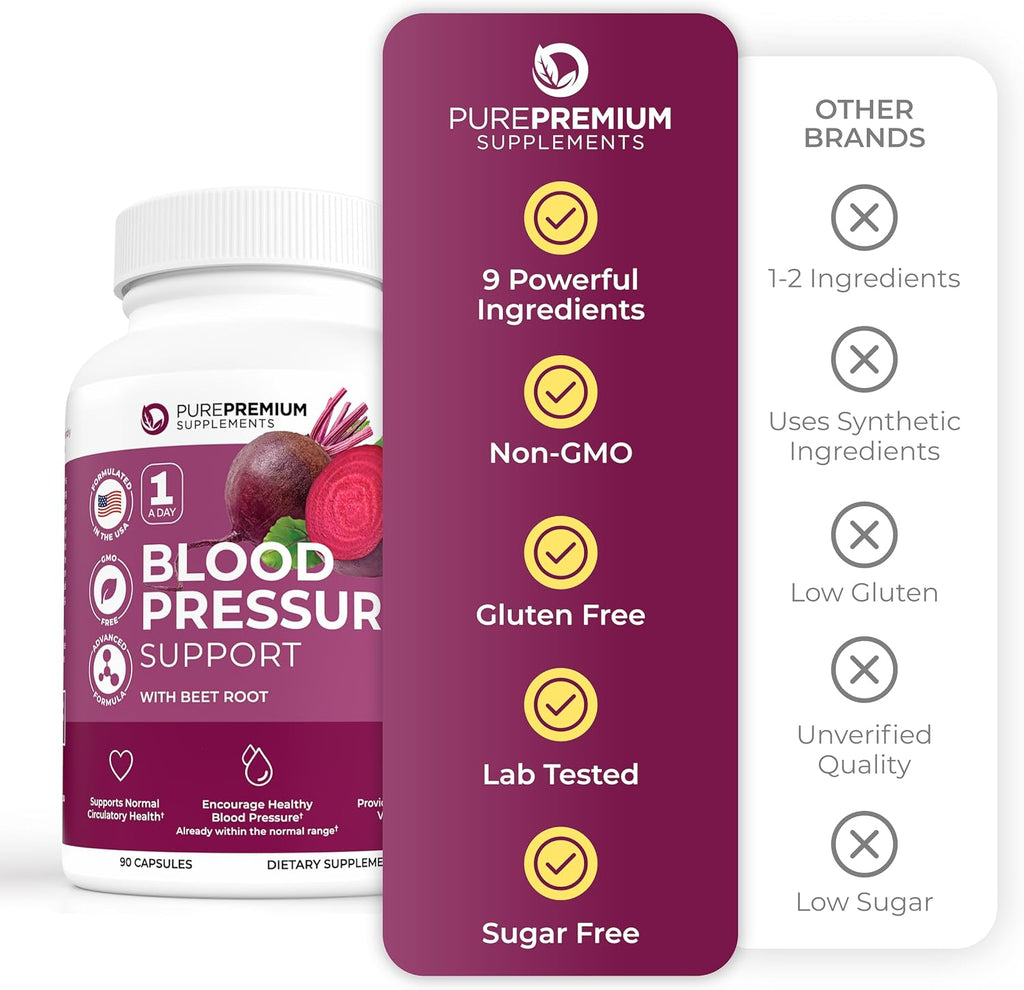 - SUPPORTS NORMAL BLOOD PRESSURE: Help support blood pressure levels already within the normal range with PurePremium beet root capsules. Our beetroot supplement includes essential vitamins for overall well-being.