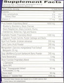 Vitamin C, Fruit Powder Proprietary Blend - Blueberry, Blackberry, Black Cherries, Black Raspberries, Black Currants, Plums, Elderberries, Bilberries, Figs and Raisins, Vegetable Powder Proprietary Blend - Eggplant, Purple Carrots, Purple Cabbage and Beets, Açaí Fruit Powder (Euterpe oleracea), Camu Camu (fruit) Powder, Mangosteen (Garcinia mangostana) Fruit Extract – Mangostin, Gogi (Wolfberry/Lycium barbarum) Berry Powder, Trans Resveratrol, Brain Function Proprietary Blend - L-Carnosine, Alpha GPC, P40p Pomegranate Extract – Punicosides, Stevia (leaf), Fibersol-2 Soluble Fiber, Guar gum, natural flavors, malic acid, citric acid. Allergy Information: This product contains Alpha GPC which is derived from Soy.