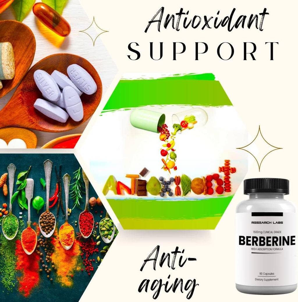 Research Labs 2 Fer 1 Ad - 1500mg Clinical Grade Berberine High Absorption Formula & BerberQuil™ Support. 180 Total Capsules. 500mg Each Capsule