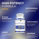 Ashwagandha, Bioperine (Piperine), Ginger (Zingiber Officinale) Root Powder. Other Ingredients: Vegetable Cellulose.