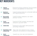 - Key Ingredients: This unique blend compiles all of the benefits of a plethora of b-vitamins. Vitamin B12 helps to promote healthy brain function while Vitamins B6 and B9 can help regulate mood. Vitamin B9 is also essential for healthy fetal development during pregnancy.