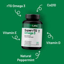 - NATURAL PEPPERMINT OIL FOR COMFORT: Super rTG Omega 3's addition of natural peppermint oil eliminates fishy burps, allowing you to enjoy the benefits of Omega 3 and CoQ10 without discomfort.