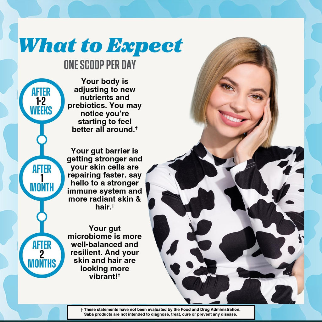 - HOW TO USE - Easily incorporate Saba PURE into your routine: - Add 1 scoop to 4-8 oz of cool water or your favorite beverage. - Mix for 45 seconds, then let sit for 2-4 minutes for a smooth texture. - Use a blender, shaker bottle, or frother for the best experience!