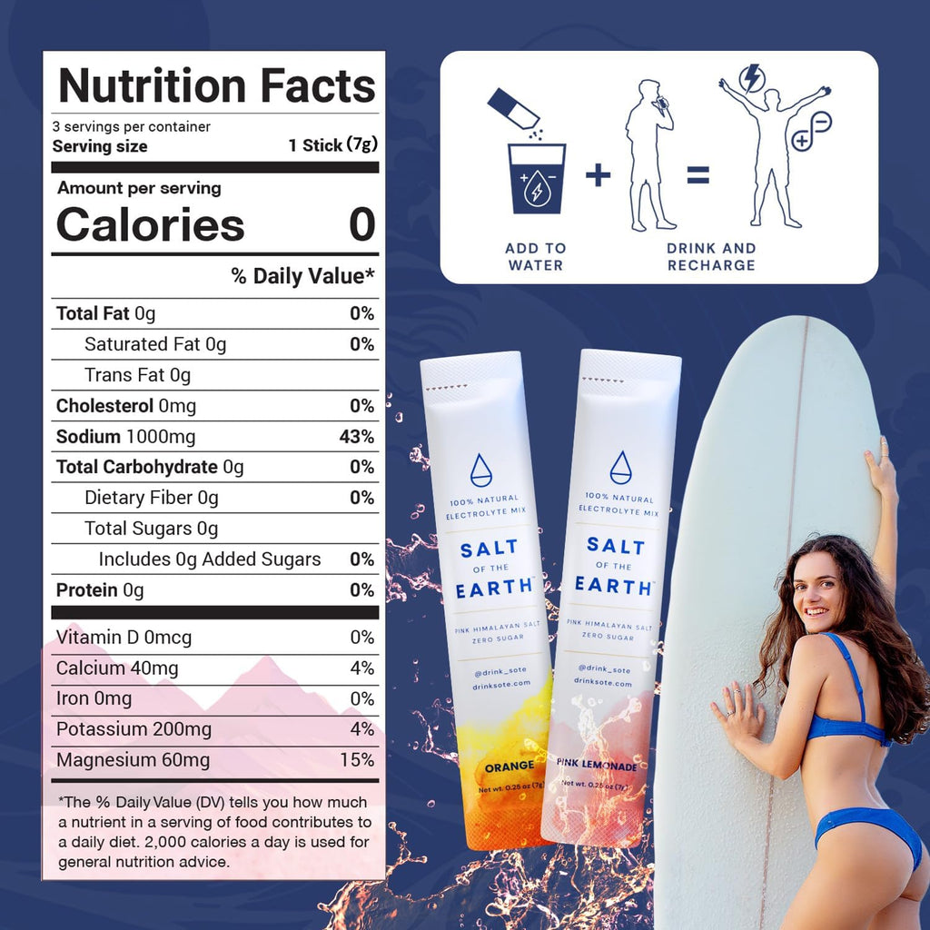 - SUMMER HYDRATION ESSENTIALS: As the temperature rises, staying hydrated becomes even more critical. In hot climates, like Miami Beach, you lose electrolytes quickly through sweat. Salt of the Earth helps you maintain your electrolyte balance, keeping you energized and refreshed. Whether you're hitting the beach, working out, or simply enjoying the sun, remember to stay salty and hydrated with Salt of the Earth.