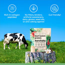 - GRASS FED BEEF ISOLATE PROTEIN: For many people plant proteins and whey proteins can disturb their gut. Our nourishing grass-fed grass finished beef isolate protein is extremely gut friendly and supports the muscles and skin as it is naturally rich in collagen peptides.