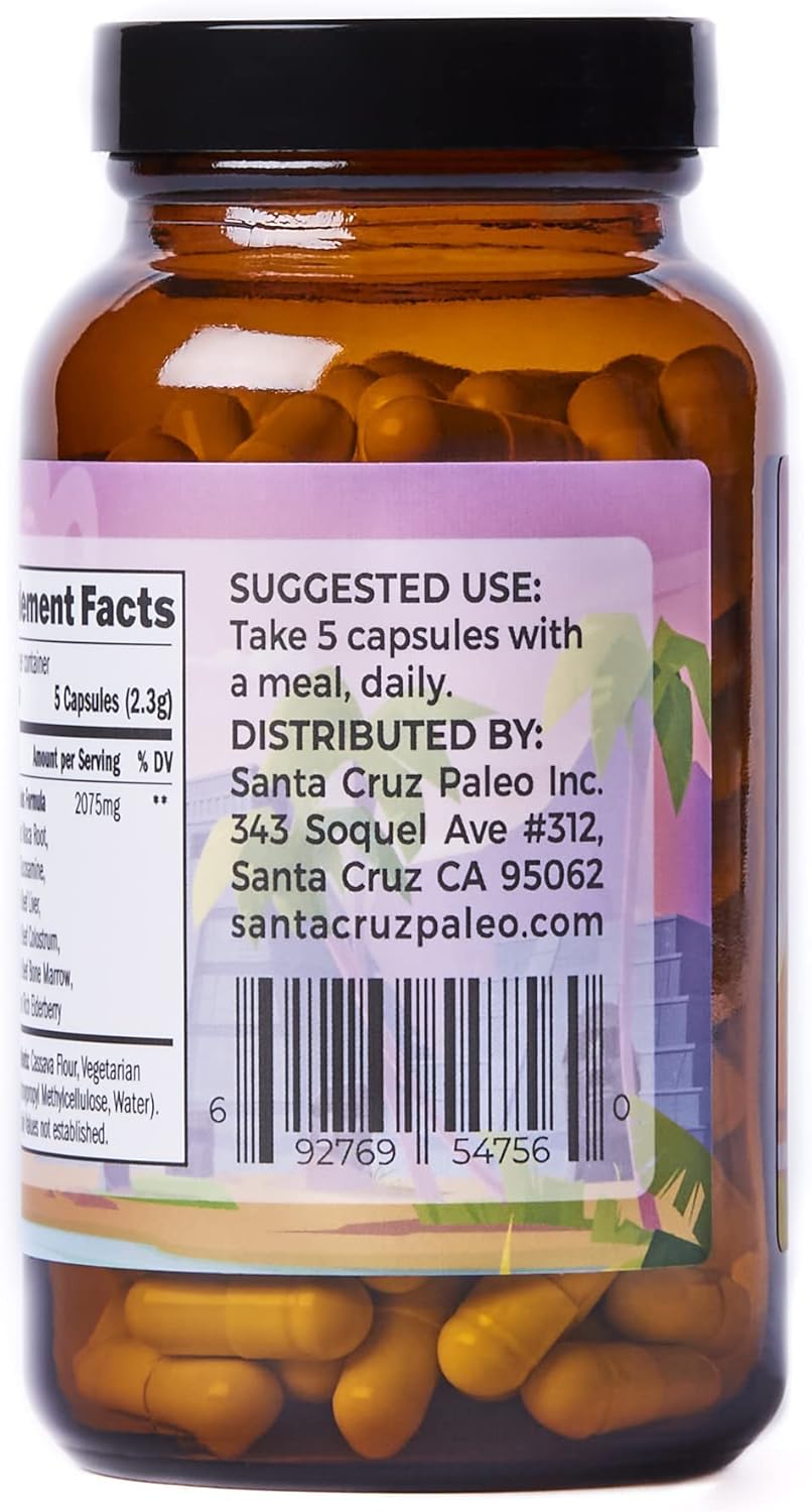 Experience the benefits of nutrient-dense ingredients with Santa Cruz Paleo Food of The Gods Grass-Fed Beef Organ Supplement. This formula features grass-fed, grass-finished beef liver, a natural source of iron and vitamin B12, paired with nutrient-rich bone marrow, known for its collagen and riboflavin content. Supporting gut health and immunity, each serving delivers 300mg of beef colostrum, complemented by 500mg of maca root, a revered plant traditionally used for centuries. Rounding out the blend, elderberry provides a dose of antioxidants and vitamins, while N-acetyl glucosamine supports joint health. Perfect for those following gluten-free, keto, or paleo lifestyles, this thoughtfully crafted supplement offers 30 convenient servings for your wellness journey.