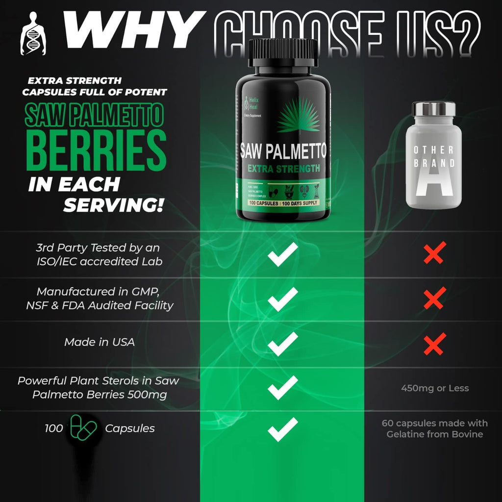 - Extra Strength Saw Palmetto Extract – Our formula designed especially for men uses potent saw palmetto extract, specially crafted as saw palmetto for men to support prostate health, urinary function, and hair growth naturally*