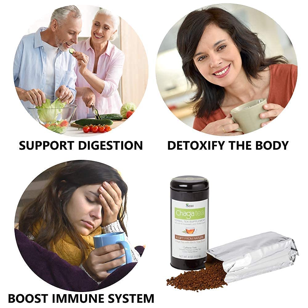 - IMPROVE DIGESTIVE HEALTH - A longevity tea to keep your digestive system in shape. It helps relieve indigestion while keeping the digestive system working smoothly. Our Chaga tea is great detoxifier, it effectively clears your body from toxins