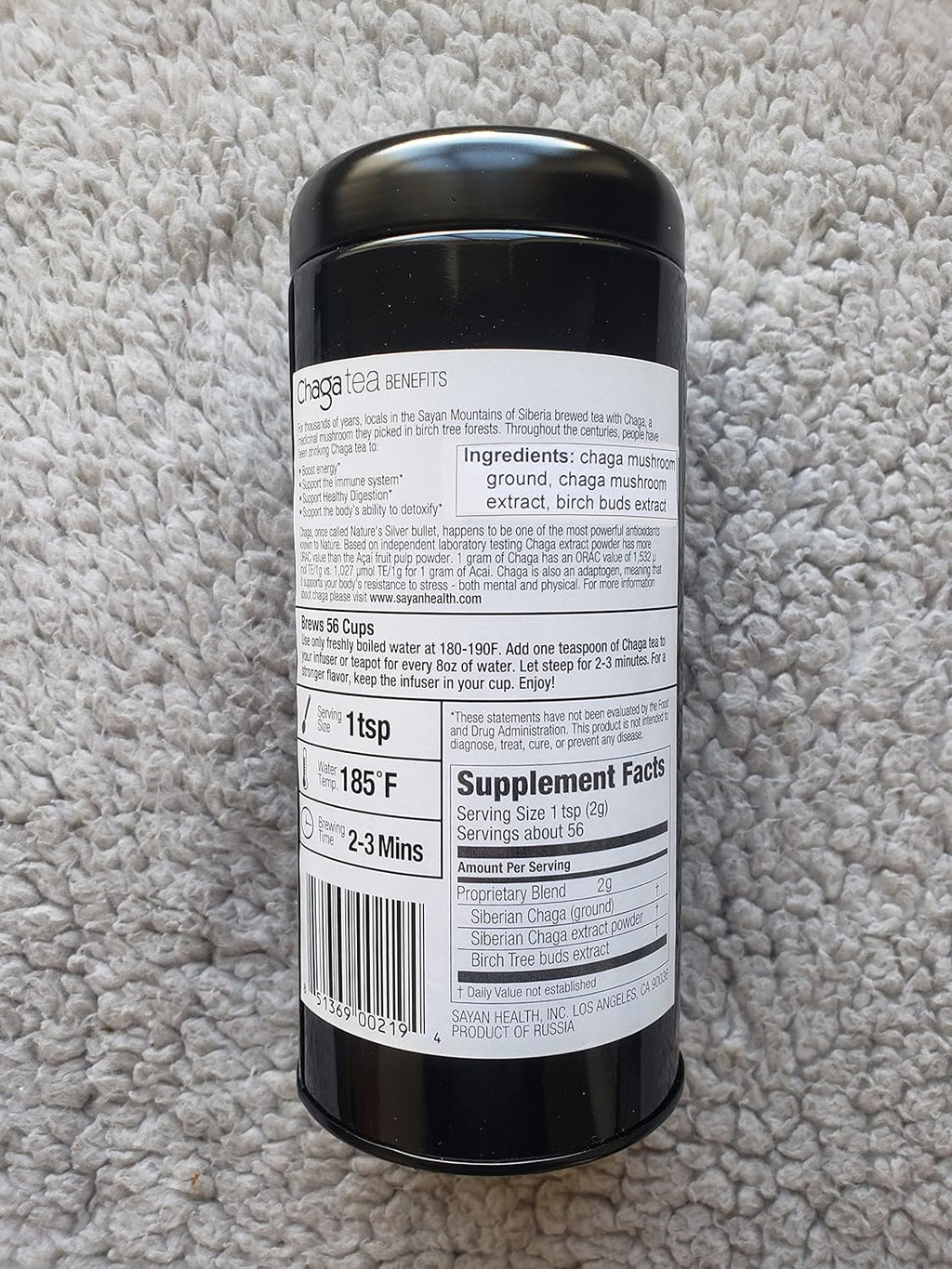 - **IMPORTANT - Please accept our apologies but due to pandemics, our supply chain was disrupted and we cannot offer this product in black tin packaging. As a temporary solution, we are offering silver tins for Chaga loose tea at this time. Please accept our apologies.**