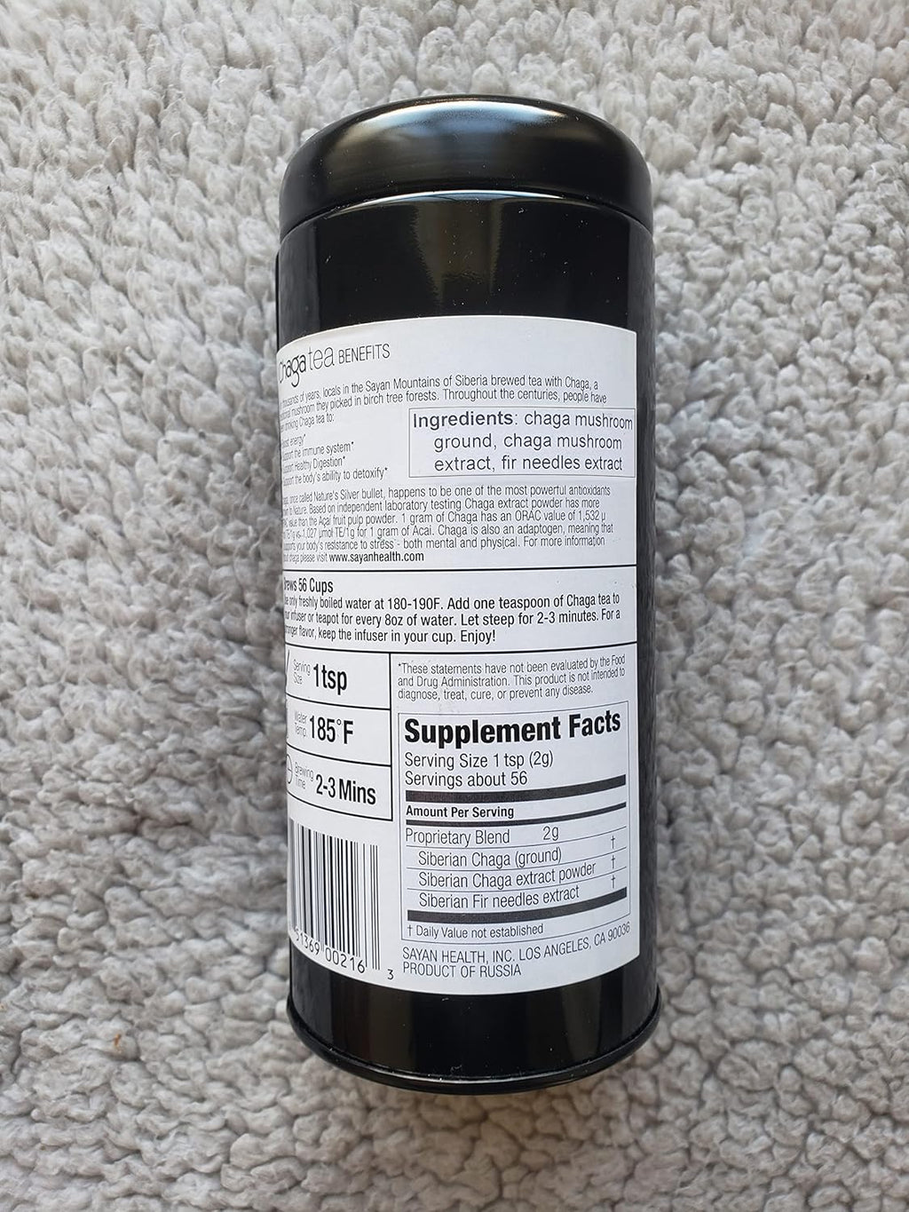 - **IMPORTANT - Please accept our apologies but due to pandemics, our supply chain was disrupted and we cannot offer this product in black tin packaging. As a temporary solution, we are offering silver tins for Chaga loose tea at this time. Please accept our apologies.**