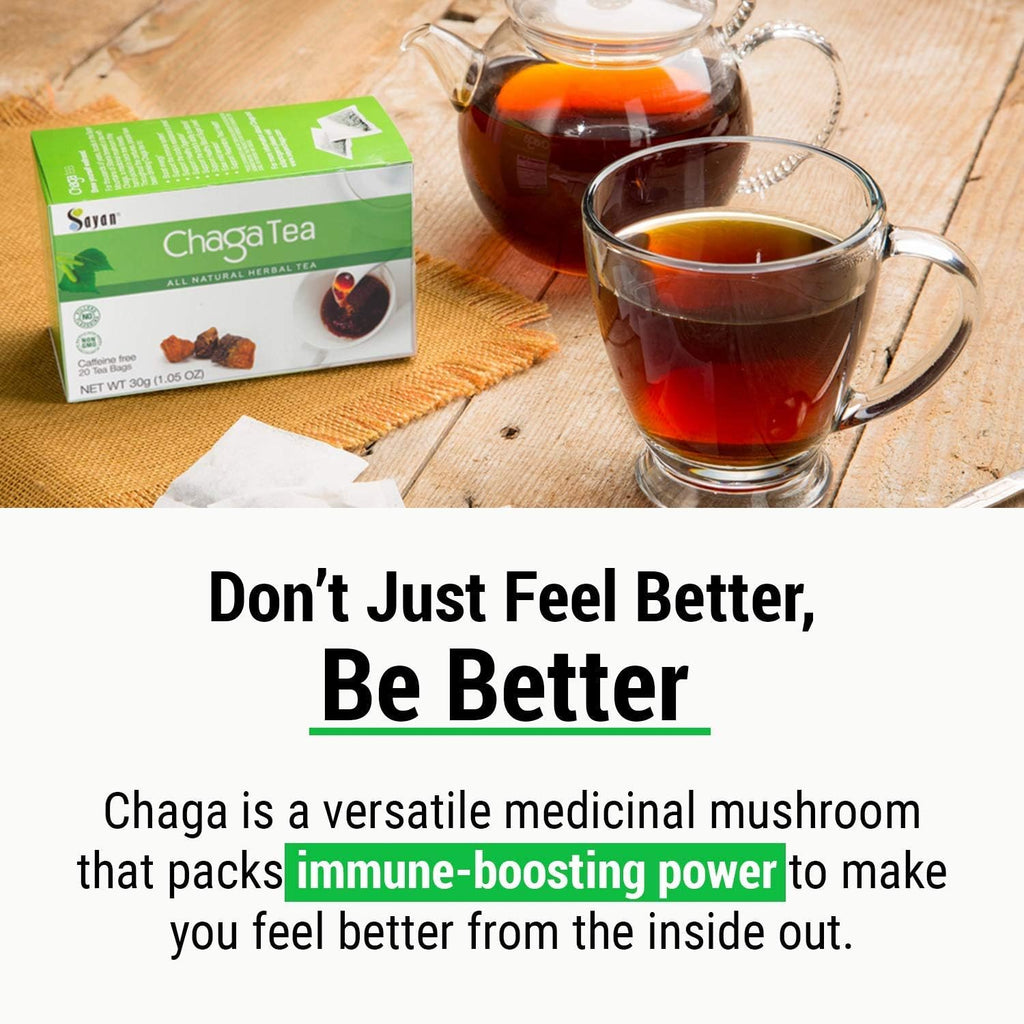 - POTENT IMMUNE SYSTEM BOOSTER - Premium 20 tea bags of aromatic refreshing tea for overall wellness! Exclusive blend of raw and extract chaga helps boost and modulate the immune system naturally. A must drink tea during cold and flu season!