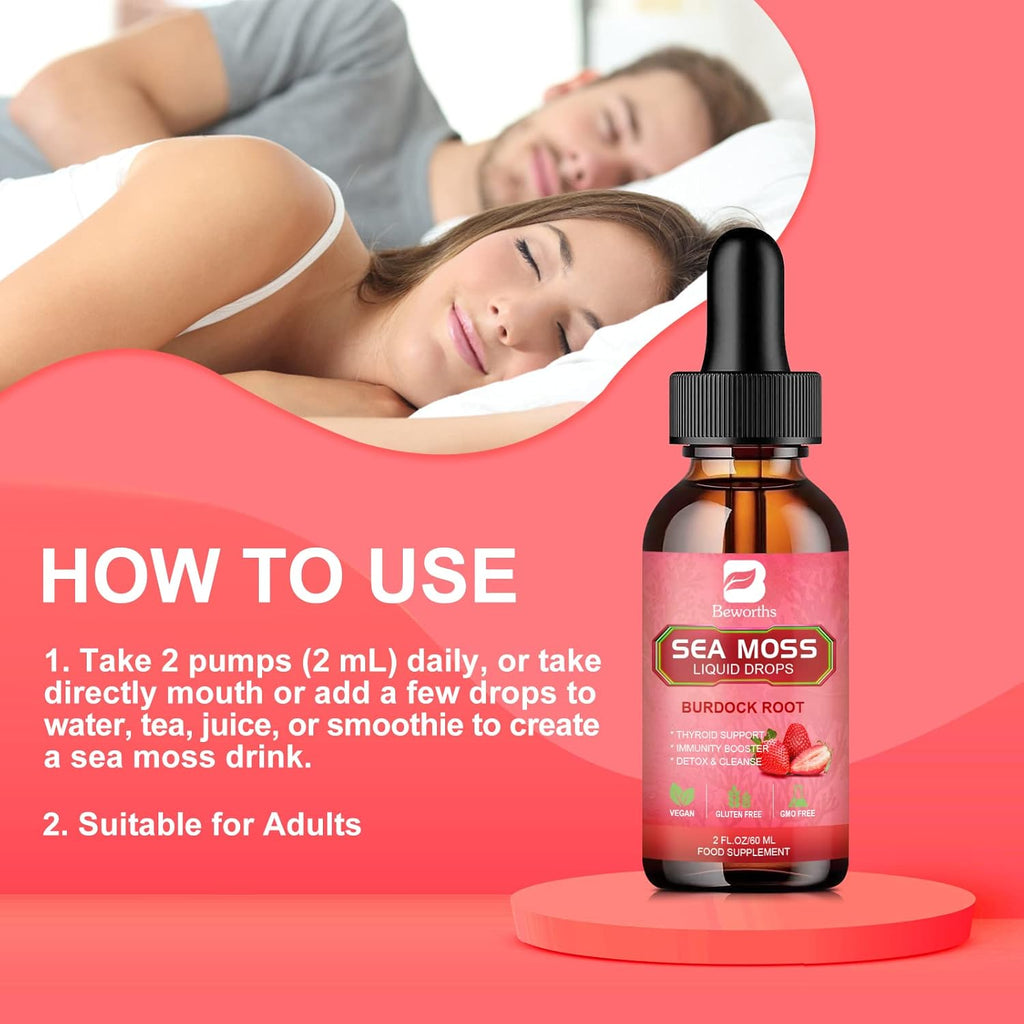 - 【Nutrient Vitamin-rich Sea Moss Liquid Drops】: Sea moss drops include the ingredients Irish sea moss, bladderwrack, burdock root, and spirulina powder. Our organic seamoss gel drops supplement is packed with 92-102 vitamins and minerals, and nutrients essential to daily health including zinc, fiber, calcium, potassium, iodine, iron, sodium, and other valuable additions.