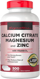 - Signature Calcium Citrate, Magnesium & Zinc with Vitamin D3 provides essential nutrients important for supporting bone health.