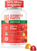New and improved SmartyPants Kids Plus Multi & Fiber is a multifunctional gummy multivitamin and digestive fiber supplement formulated with nutrients parents want in a delicious format that kids love! Each serving delivers 15 daily nutrients including prebiotic fiber for digestion,* vitamins D3 for bone health*, C for immune support,* B12 to support energy metabolism*, folate in the premium form, methylfolate, and the antioxidant, vitamin E, all in one delicious three-gummy serving.* SmartyPants formulas include nutrient forms that your child's body can easily use, like D3 and folate as methylfolate, to help fill nutrient gaps and support overall growth and development.* Our formulas are non-GMO, third party lab tested for purity and potency, made without any synthetic colors or artificial sweeteners. Serving size is 3 gummies per serving.