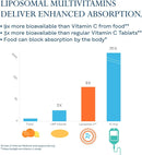 - Enhanced Absorption: Because supplemental vitamins can have a difficult time surviving stomach acid, our Liposomal Multivitamin uses advanced technology to form a protective vehicle around each nutrient that may help deliver it directly to cells for greater absorption and gentler digestion.*