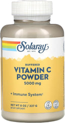 Radiate wellness from the inside out. Solaray Vitamin C is designed to support normal, healthy collagen synthesis, cartilage and bone development, central nervous system, immune system, antioxidant activity, and blood vessel support. Committed to crafting quality supplements you can count on, our formula combines 5,000 mg of vitamin C with calcium for a buffered powder that may be easier on digestion. Free from fillers and excipients, Solaray Buffered Vitamin C Powder is a super high-potency option for those times you need an extra boost. Just add 1 heaping teaspoon to water or your favorite beverage and shine brighter with Solaray Vitamin C! Vitamin C (from Calcium Ascorbate), Calcium (from Calcium Ascorbate), Use only as directed. Mix 1 heaping teaspoon (6 g) into water or juice and drink with meals. Store in a cool, dry place.
