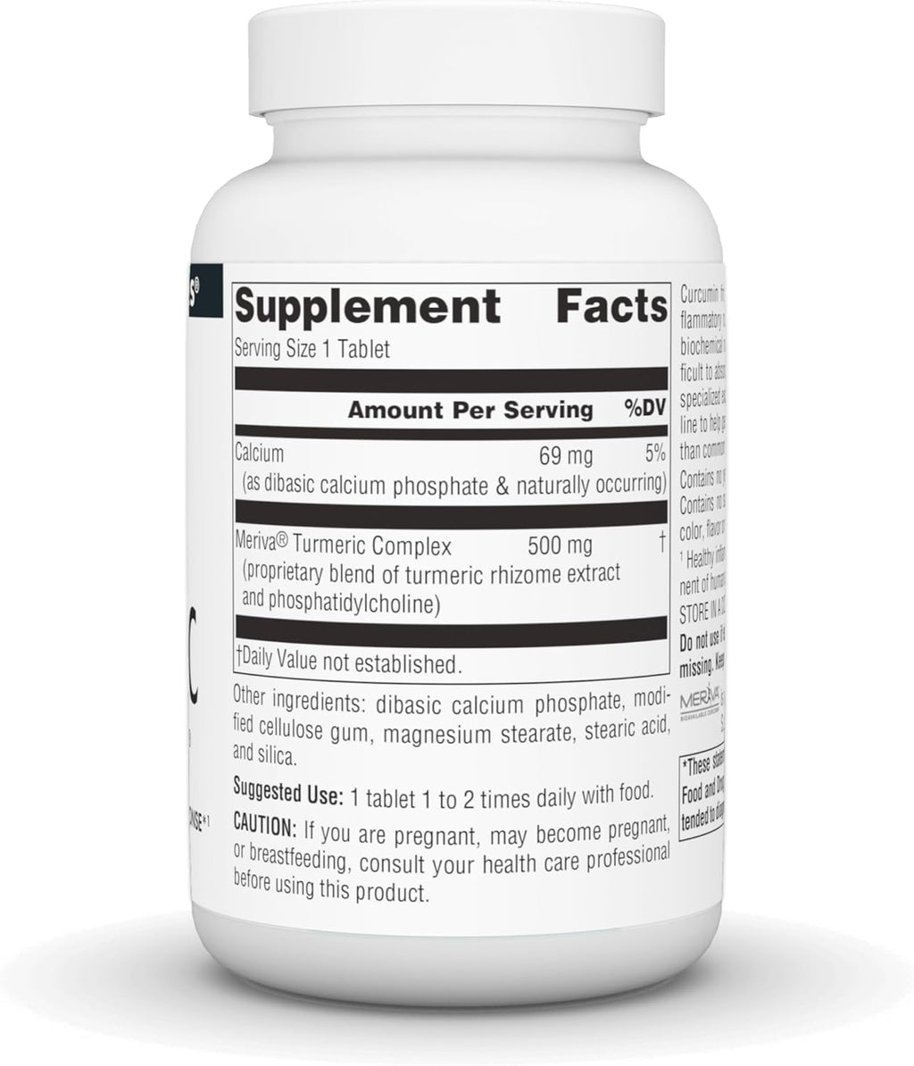 Meriva® Turmeric Complex (proprietary blend of turmeric rhizome extract and phosphatidylcholine). Calcium (as dibasic calcium phosphate & naturally occurring)