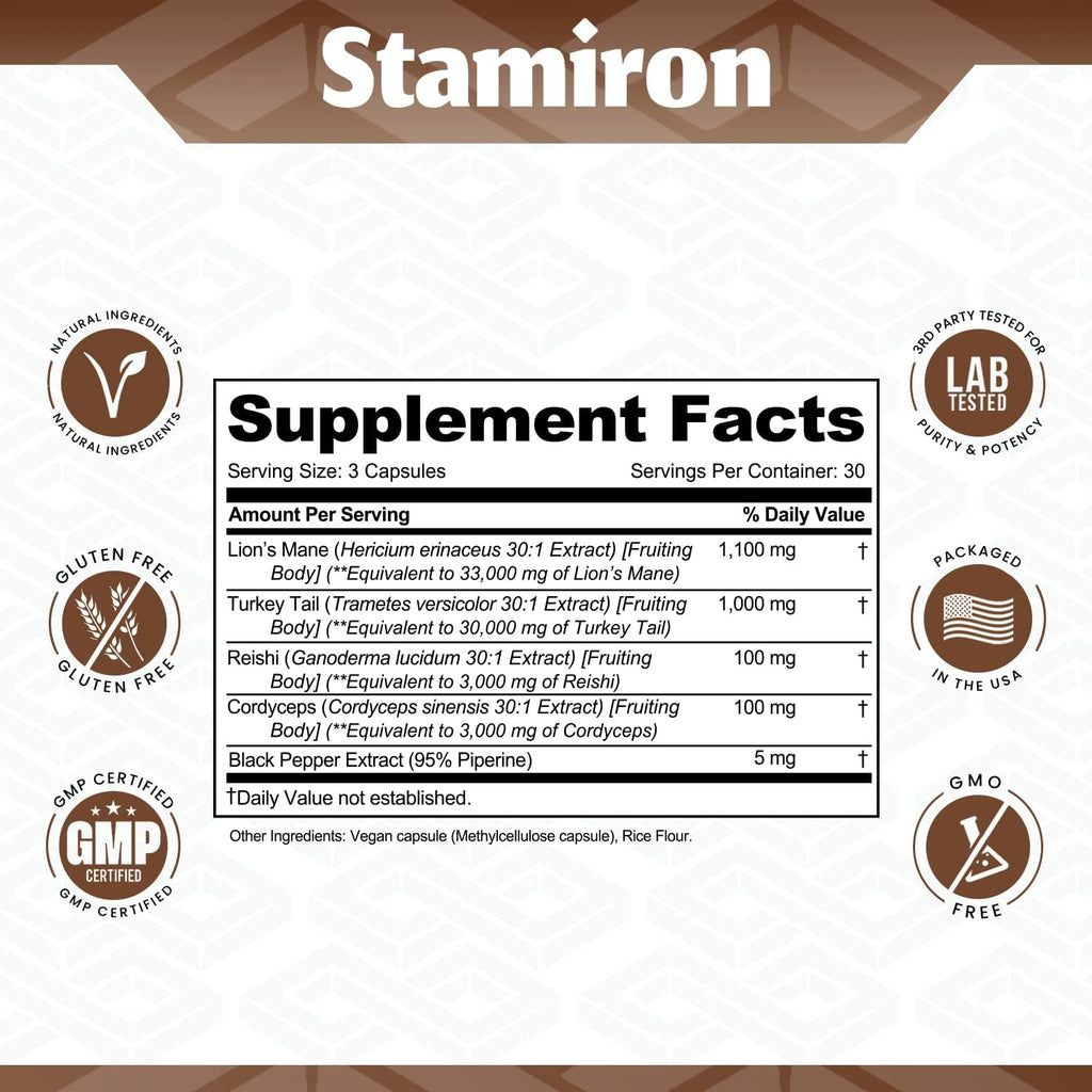 - Made In The USA - All Stamiron's products are made in the USA from the finest of both domestic and globally sourced vitamins, minerals, and herbal extracts. We make our products without the use of harmful additives, added hormones, gluten, and dairy. All products are formulated, manufactured and packed in the USA in a registered certified facility.