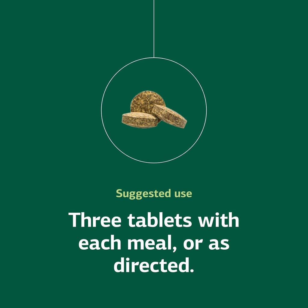 Three tablets per meal, or as directed.