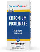Enjoy your wellness journey with Superior Source Chromium Picolinate, designed to support your body?s natural sugar metabolism and aid blood sugar levels already within a healthy range. Our chromium supplement is formulated with essential chromium in trace amounts, vital for supporting the maintenance of normal metabolic processes. Whether you're looking to aid your daily nutrient intake or seeking a reliable mineral supplement, our chromium supplement is the perfect addition to your health routine. Superior Source utilizes Instant Dissolve MicroLingual technology to deliver a chromium supplement that supports optimal nutrient absorption. These easy-to-consume tablets dissolve quickly, aiding fast absorption and making them ideal for those who prefer a convenient supplementation experience. Each tablet contains high-quality chromium picolinate, a form of chromium that supports the metabolism of carbohydrates and maintenance of energy throughout the day. Whether you're seeking an energy supplement to aid your daily vitality or a supplements that supports your unique nutritional requirements, Superior Source Chromium Picolinate is crafted to support your overall health effectively. Superior Source MicroLingual vitamins are bariatric- and senior-friendly. Operating from a 100,000-square-foot manufacturing facility, Continental Vitamin Company was founded by Ron Beckenfeld in 1969. With a state-of-the-art GMP-certified facility, CVC's exceptional Superior Source product line has earned the trust of the natural product community with a growing list of over 100 products, including MicroLingual tablets. The company has been a member of the Natural Products Association since 1997.