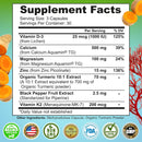 - Calcium 500mg, Magnesium, Zinc + D3, K2 & Turmeric (1-Month Supply): 7-in-1 bone health complex containing plant-based calcium & magnesium from Aquamin red algae, zinc (as zinc picolinate), organic turmeric, Vitamin K2, Vitamin D3 from lichen, and black pepper for enhanced bioavailability. Supports bone health and muscle function.