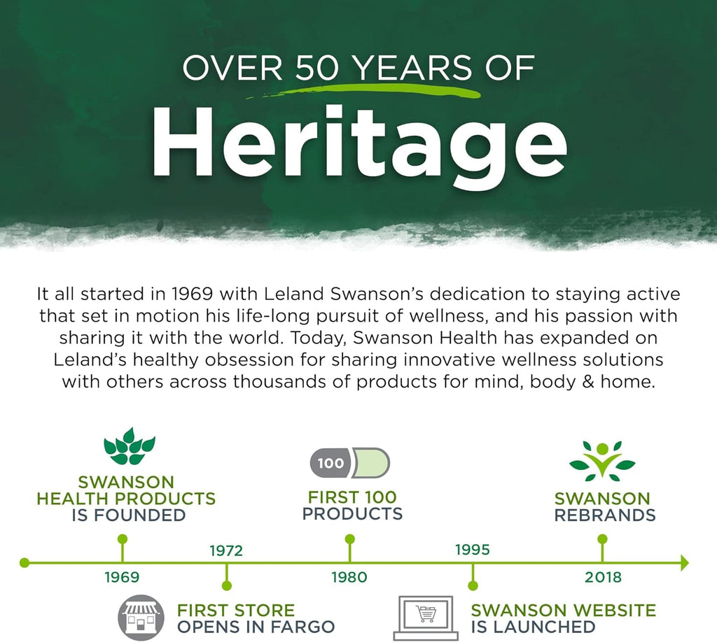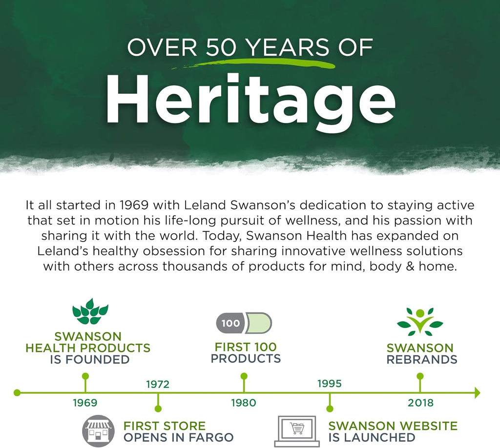 - OUR QUALITY & HERITAGE - We're control freaks... in a good way! For nearly 50 years, Swanson Health has delivered science-backed health products worldwide. In 1969, we began in Fargo, ND, with a mission to offer wellness solutions that help people live simply healthier together. Our facilities are Good Manufacturing Practice (GMP) certified, and our purity and potency testing includes independent third-party labs. Clinical research, scientific consensus and usage traditions guide our innovation.