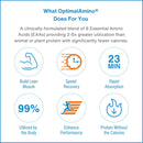 - No bloat! Ultra-low calorie. OptimalAmino essential amino acids (EAAs) are the perfect replacement for animal and plant-based dietary protein and protein powders.