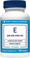 Supports cardiovascular healthPromotes natural immunitySuitable for everyday wellness seekersFree of gluten, dairy, nuts, sugar, salt, preservatives, and artificial colors or flavors There's basically a vitamin for every letter in the alphabet, so what sets vitamin E apart from the rest? Vitamin E is an essential vitamin and antioxidant needed to promote natural immunity and protect your cells from free radical damage. It also plays an integral role in supporting the structure and function of your cardiac cells. Designed to support a healthy heart and fortified immune system, The Vitamin Shoppe brand Vitamin E softgels contain 400 IU of this important nutrient.