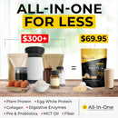 Amino Optimized Protein Blend (Pea Protein Isolate, Hydrolyzed Collagen, Egg White Protein, Pumpkin Seed Protein) Enzyme Blend (Alpha Amylase, Protease, Lactase, Cullulase, Lipase) Leucine, Bacillus Coagulens Probiotic