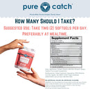 - Purely Wild: Pure Catch delivers essential ingredients found in wild Alaska salmon. Each serving provides 600 mg of omega 3 fatty acids, including EPA and DHA 200 IU of naturally-occurring vitamin D3 , vitamin A, and astaxanthin.