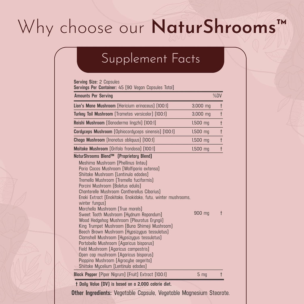- Mushrooms and Black Pepper: Enhanced with Black Pepper for maximum absorption, NaturShrooms is your trusted choice for mushroom wellness.