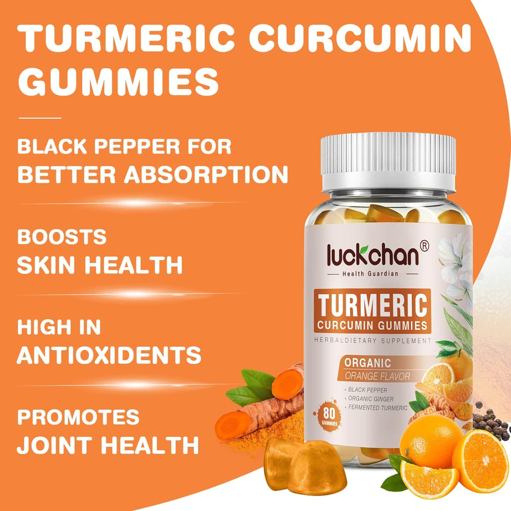 - Powerful Health Benefits: LUCKCHAN Turmeric Curcumin Gummies with Ginger & Black Pepper Extract, you can take delicious tumeric gummy (only 0.5 gram per serving = 2 gummies) supplements 300mg every day and enjoy all its added benefits without the mess of a turmeric powder or difficult-to-take capsules. Our , turmeric curcumin provide support support mobility and muscle health, fight long-term inflammation, promote healthier skin and provide immune support.