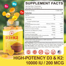 - β [POWERFUL BONE & IMMUNE SUPPORT] Boost bone and immune health with 10,000 IU Vegan D3 (from lichen) and 200 mcg K2 MK-7 (from natto). This dynamic duo supports calcium absorption for strong bones and teeth.