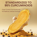 Vitamin D3 (as cholecalciferol from lichen) 250mcg (10000IU). Vitamin K2 (Menaquinone as All-Trans MK-7 from Natto) 200mcg. Turmeric (Curcuma longa) Root Extract (Standardized to 95% Curcuminoids) 1200mg & Black Pepper Extract. Calcium, Magnesium, Zinc