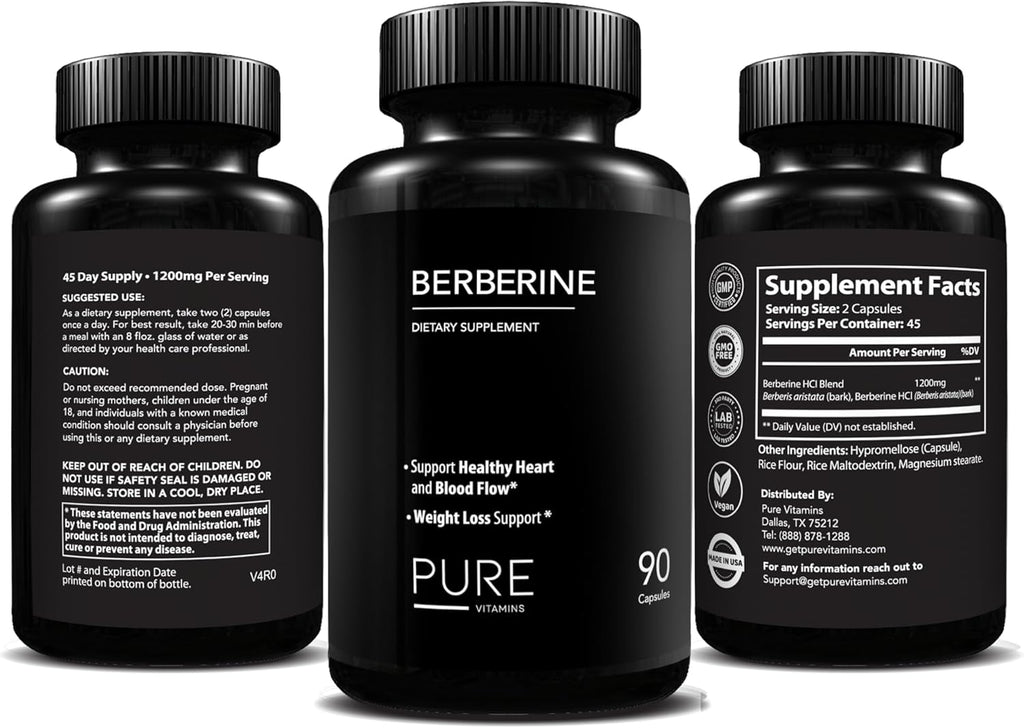 - ๐๐ซ๐จ๐ฆ๐จ๐ญ๐๐ฌ ๐๐๐ซ๐๐ข๐จ๐ฏ๐๐ฌ๐๐ฎ๐ฅ๐๐ซ ๐๐๐๐ฅ๐ญ๐ก: Purevitamins berberine 1200 mg capsules supports a healthy heart and helps maintain cholesterol levels already within the normal range. Regular use with 1 to 2 capsules daily can promote heart health by supporting proper blood circulation and maintaining healthy cholesterol levels, which are essential for overall cardiovascular wellness.