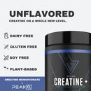 - CREATINE+: Vedge Creatine+ combines the highest-grade Creatine Monohydrate available with Peak02 - a trademarked ingredient with proven studies showing increases in strength, energy & performance. Together, Creatine Monohydrate & Peak02 work to enhance your gains, strength and increase your training capacity, taking your results to another level.
