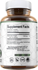 - Apple Cider Vinegar with The Mother- 1600mg pure ACV per serving, 180 Vegan Capsules (3 Month Supply) Supports detox and healthy digestion