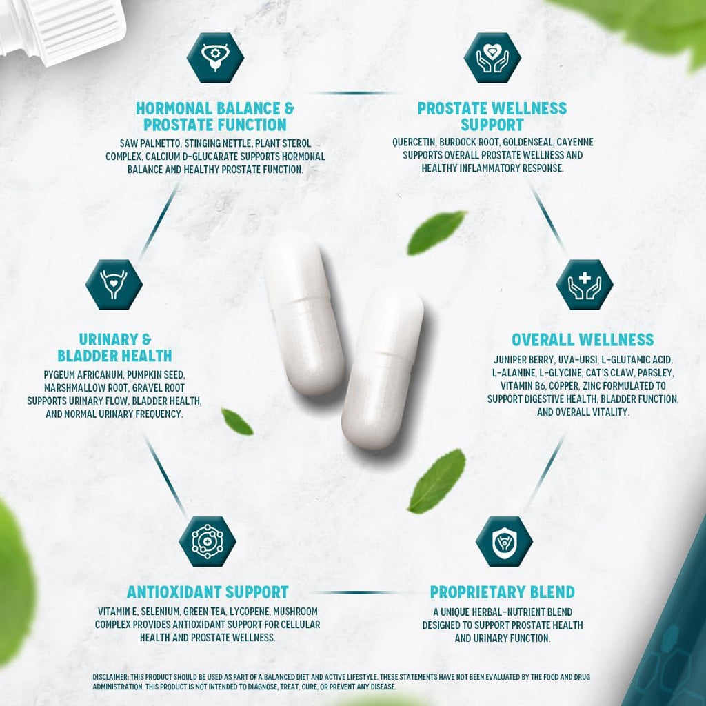 - Overall Men’s Wellness: Designed to promote hormonal balance, immune function, and vitality with a targeted blend of nutrients—supports men’s overall health in addition to prostate-specific wellness needs.