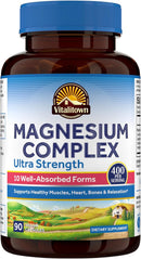 - 10-In-1 Magnesium Supplement: Vitalitown Ultra Strength Magnesium Complex Supplement contains 400 mg of elemental Mag per serving from ten of the most beneficial forms: magnesium glycinate, malate, gluconate, taurate, lactate, citrate, aspartate, succinate, oxide, and orotate.* They are specially selected for both men and women with unsurpassed bioavailability & quality.