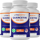3 Pack - Vitamatic Quercetin 500 mg, 120 Vegetarian Capsules (Non-GMO, Gluten Free, Vegan) - Supports Cardiovascular Health