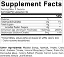 Chromium as Chromium Picolinate, Maltitol Syrup, Isomalt, Pectin, Citric Acid, Sodium Citrate, Natural Raspberry Flavor, Palm Oil, Carnauba Wax, Colors Added (Purple Carrot Juice Concentrate), Stevia Leaf Extract.