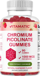 2 Packs Vitamatic Chromium Picolinate 1000 mcg - 90 Gummies - High Potency Chromium - Raspberry Flavor