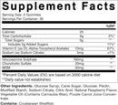 Glucosamine Sulphate, Chondroitin Sulfate, MSM, Glucose Syrup, Cane Sugar, Glucose, Pectin, Modified Starch, Sodium Citrate, Citric Acid, Natural Raspberry Flavor, Vegetable Oil (Carnauba Wax), Purple Carrot Juice Concentrate