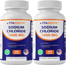 Stay hydrated and support your electrolyte balance with Vitamatic Sodium Chloride Tablets. Each tablet provides 1000mg of pure sodium chloride, an essential electrolyte that plays a key role in maintaining proper fluid balance, muscle function, and nerve signaling.