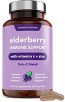 Vitamin Bounty Elderberry Capsules deliver a targeted immune support formula made with Sambucus elderberry, zinc, and vitamin C — three of the most trusted ingredients for protecting your body from seasonal and environmental stress. Each capsule contains antioxidant-rich elderberry extract to help support respiratory health, reduce inflammation, and boost immunity. We've included zinc and vitamin C to further enhance immune response and keep your defenses strong. Unlike elderberry gummies that are loaded with sugar, our non-GMO, sugar-free capsules are clean, effective, and easy to take — ideal for daily wellness support for both men and women.
