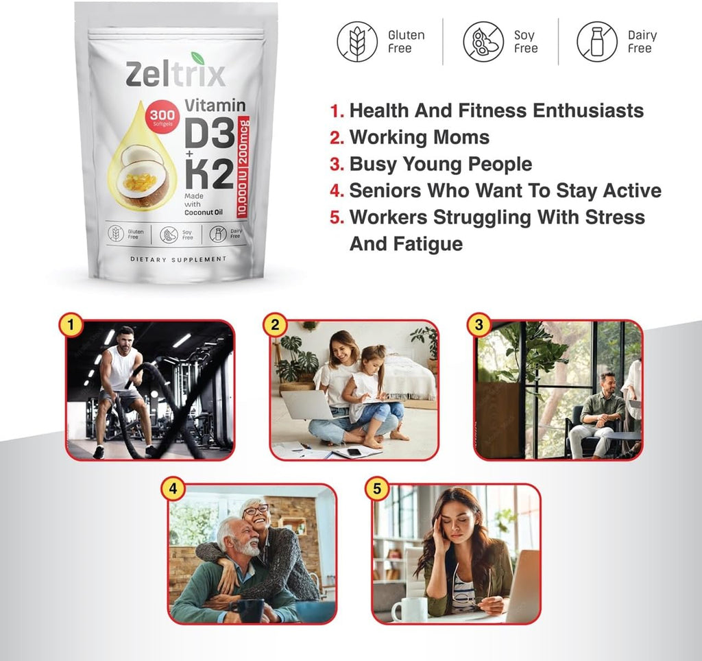 - Clean, Non-GMO, & Tested for Purity: Made in GMP-certified facilities, our vitamin d3 k2 softgels are Non-GMO, soy-free, gluten-free, and third-party tested for safety and potency. Perfect for those seeking vitamine d3 k2 or vitamina d3 con k2 without harmful additives.