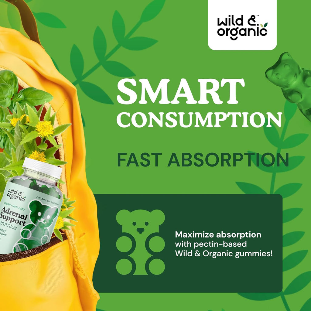 - Adrenal Support: Each serving of Wild & Organic adrenal support gummies contains 300 mg of ashwagandha root and 150 mg of rhodiola rosea extract to support a positive mood.