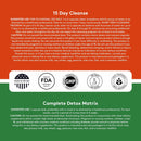 Do not exceed recommended dosage. 15 Day Cleanse contains senna leaves and cascara sagrada. This product should be consumed with at least a full glass of liquid. Consuming this product without enough liquid may cause choking. Do not consume this product if you have difficulty in swallowing. If you have a known medical condition and are taking medication, consult your physician prior to taking this or any dietary supplement. This product is not intended for pregnant or nursing mothers or children under the age of 18. Avoid taking Complete Detox Matrix in conjunction with other dietary supplements which contain high levels of elemental chromium. Pregnant or nursing mothers, children under 18, and individuals with a known medical condition should consult a physician before using this or any dietary supplement. This product is manufactured and packaged in a facility which may also process milk, soy, wheat, egg, peanuts, tree nuts, fish and crustacean shellfish. KEEP OUT OF THE REACH OF CHILDREN. DO NOT USE IF SAFETY SEAL IS DAMAGED OR MISSING. STORE IN A COOL, DRY PLACE.