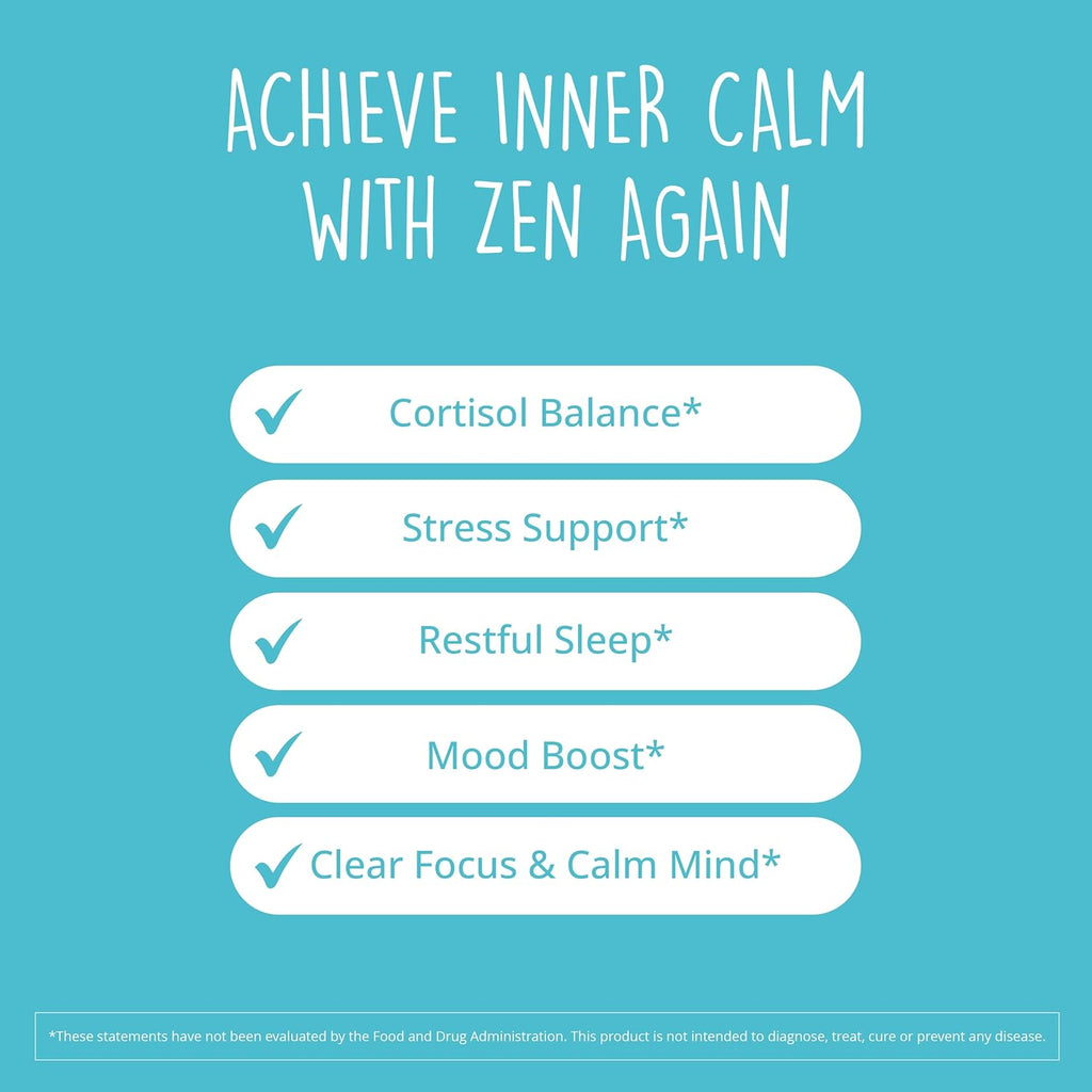 - [Clean, Conscious Formula] Zen Again cortisol health is 100% vegan, plant-based, non-GMO, and free from gluten, dairy and artificial fillers. Manufactured in a GMP-certified facility and third-party tested for quality, purity, and safety.*