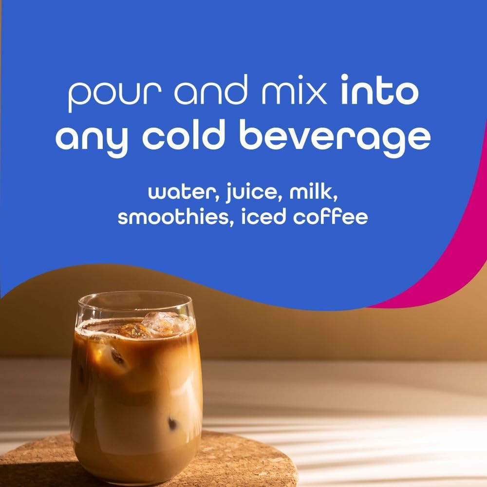 Pour 1 scoop into an empty glass, add 8-10oz of water or any cold beverage, mix well and enjoy.
